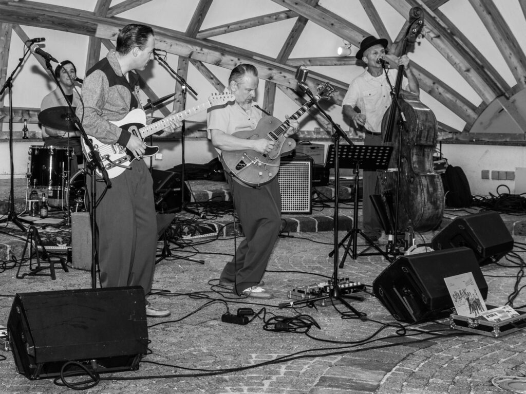 Die vierköpfige Band kreiert seit 2019 mit viel Leidenschaft und Groove ihren authentischen Sound im Stil der großen amerikanischen Meister der 40er und 50er Jahre. Zwei Gitarren, Kontrabass, Schlagzeug und eine großartig swingende Singstimme – mehr braucht es nicht um das Publikum von ihren Stühlen springen zu lassen. Denn sobald die ersten Akkorde erklingen, wollen alle nur das eine: Tanzen, Tanzen, Tanzen!